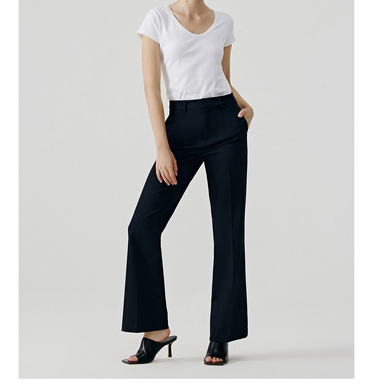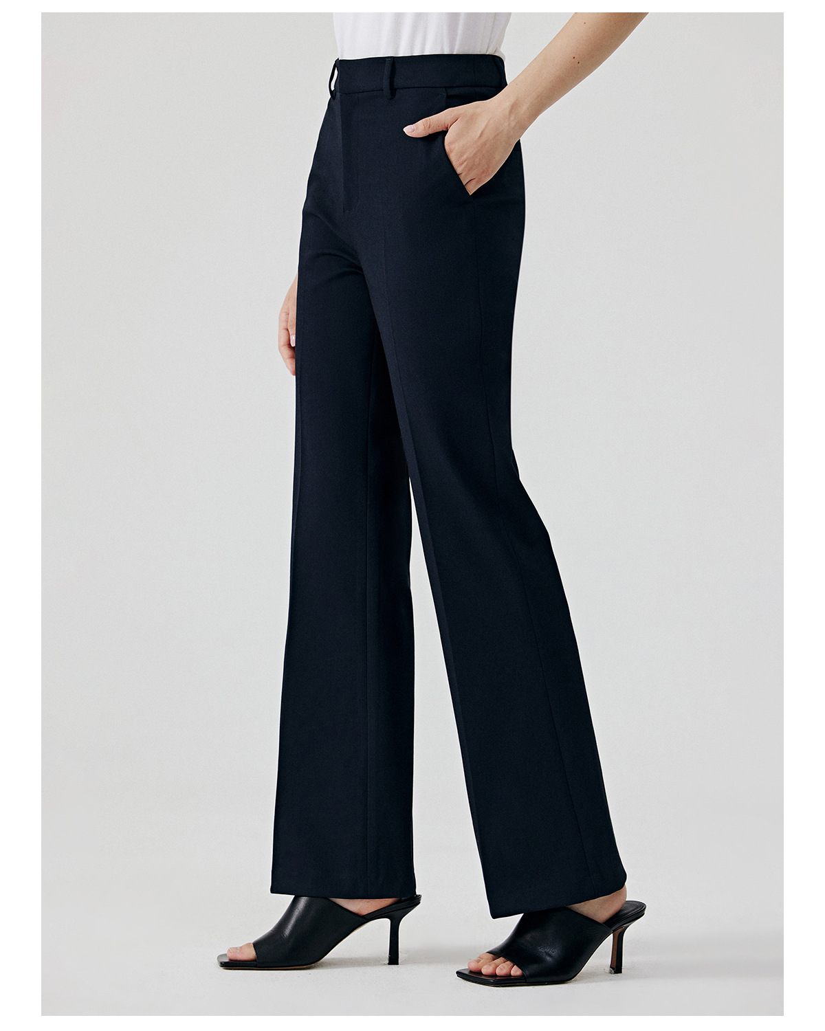 Flared pants fit, stylish and confident, flattering and slimming, creating smooth leg lines, suitable for both commuting and the workplace.
