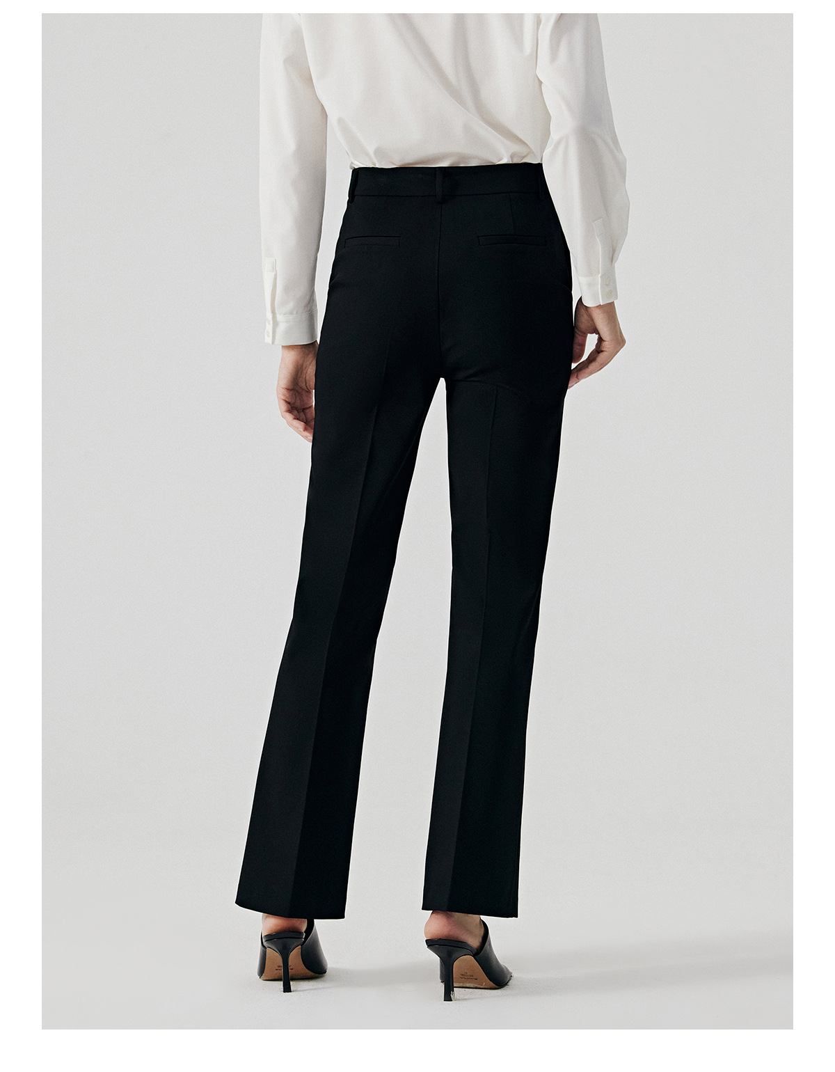 Flared pants fit, stylish and confident, flattering and slimming, creating smooth leg lines, suitable for both commuting and the workplace.